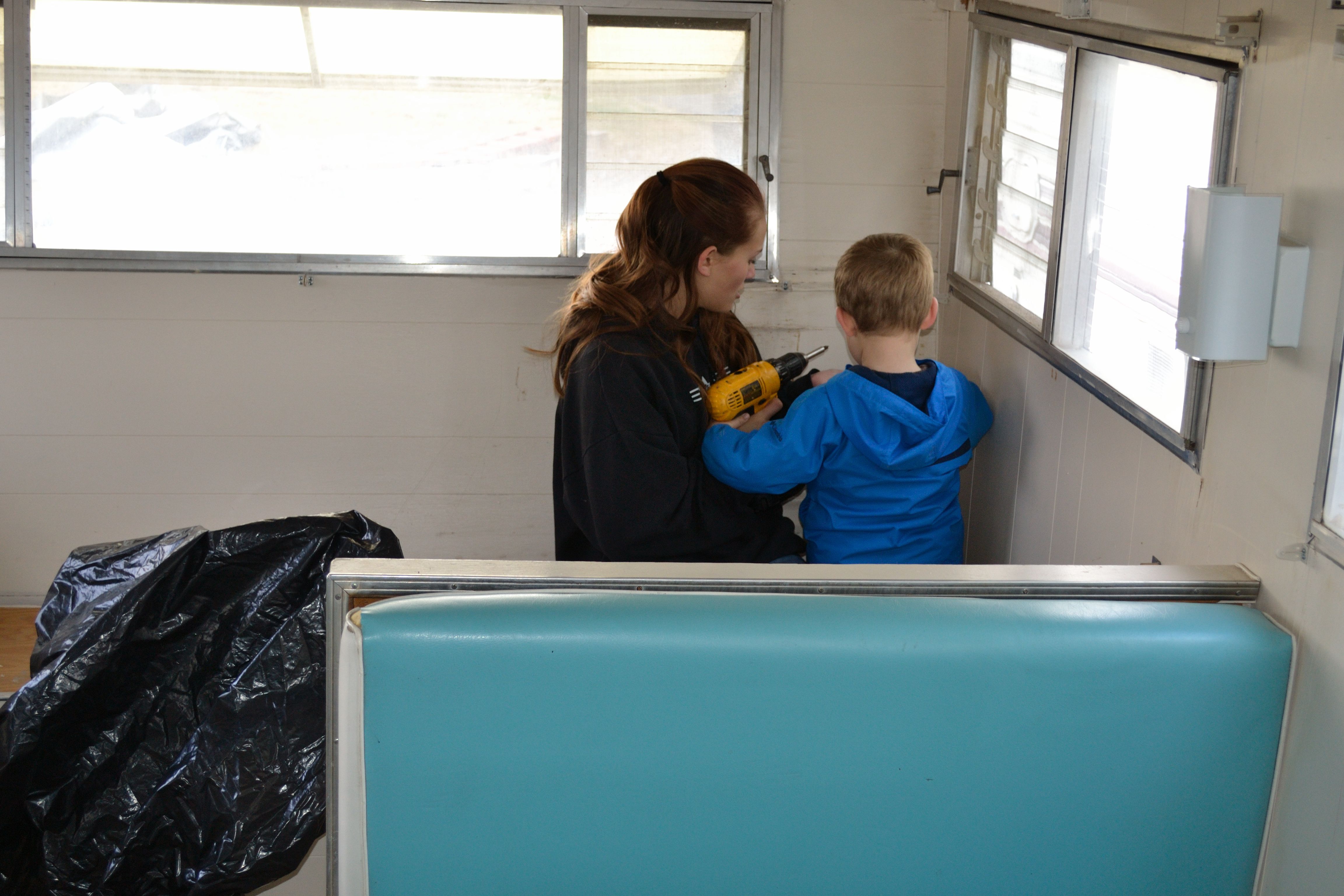 You know what else Mr. Handy did? He found our spectacular live-edge countertop! My original plan was to use butcher block for the countertop, but on a trip to Home Depot to grab wood for the cupboards, he discovered that for just a little extra money, we could get a pre-finished slab of wood with a beautiful live edge. It was even more perfect than I could have imagined!