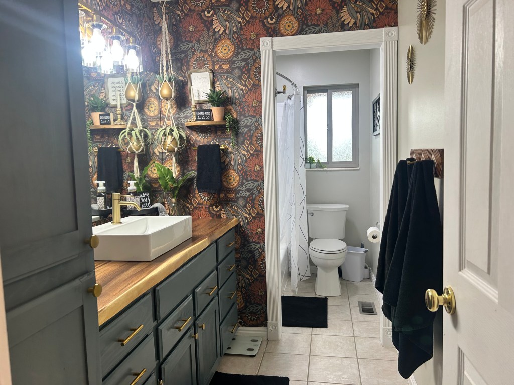 Instead of paying THOUSANDS of dollars to completely remodel our bathroom, we ended up spending around $750 for everything to make this bathroom look like an entirely new space.