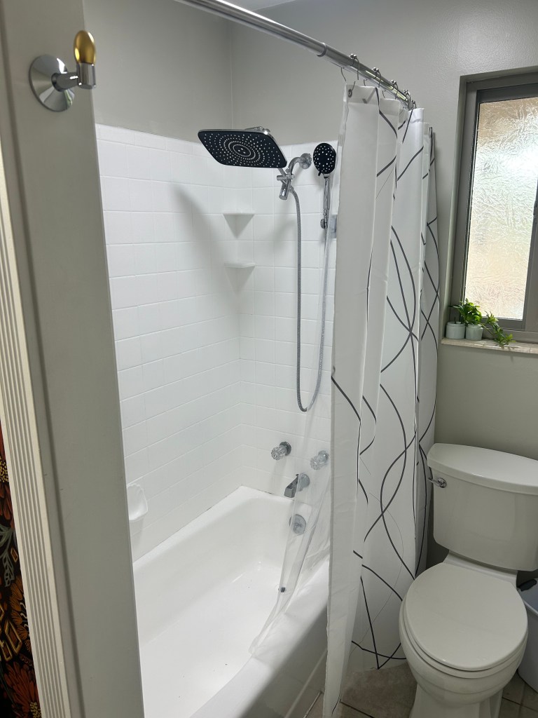Now, let’s take a peek into the shower area of the room so I can tell you about all the details here. And of course, it all came from Amazon!